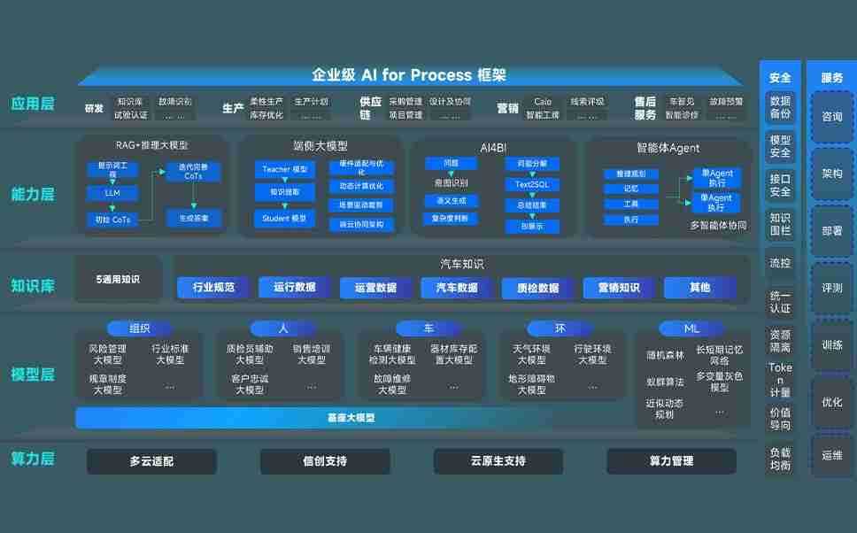 尊龙凯时问学智车解决方案是一套基于AI技术的汽车行业智能化系统,,,覆盖从底层算力到顶层AI应用的全栈方案。。。方案由算力层、、、、模型层和应用层组成:算力层,,方案支持多种一体机配置,,,,具备云端灵活部署、、多云适配以及动态优化计算资源的能力;模型层,,,尊龙凯时问学平台版提供了企业级AI应用一站式构建与管理平台,,,支持基于后训练强化技术的汽车企业专属模型的训练、、评测和运营;应用层,,尊龙凯时问学DeepSeek版提供包括超级员工、、、、智能招采、、、智能营销、、、、智能客服、、、AI for BI等一系列解决方案,,,可助力汽车行业实现数字化转型,,,让管理更智能、、、响应更敏捷。。
